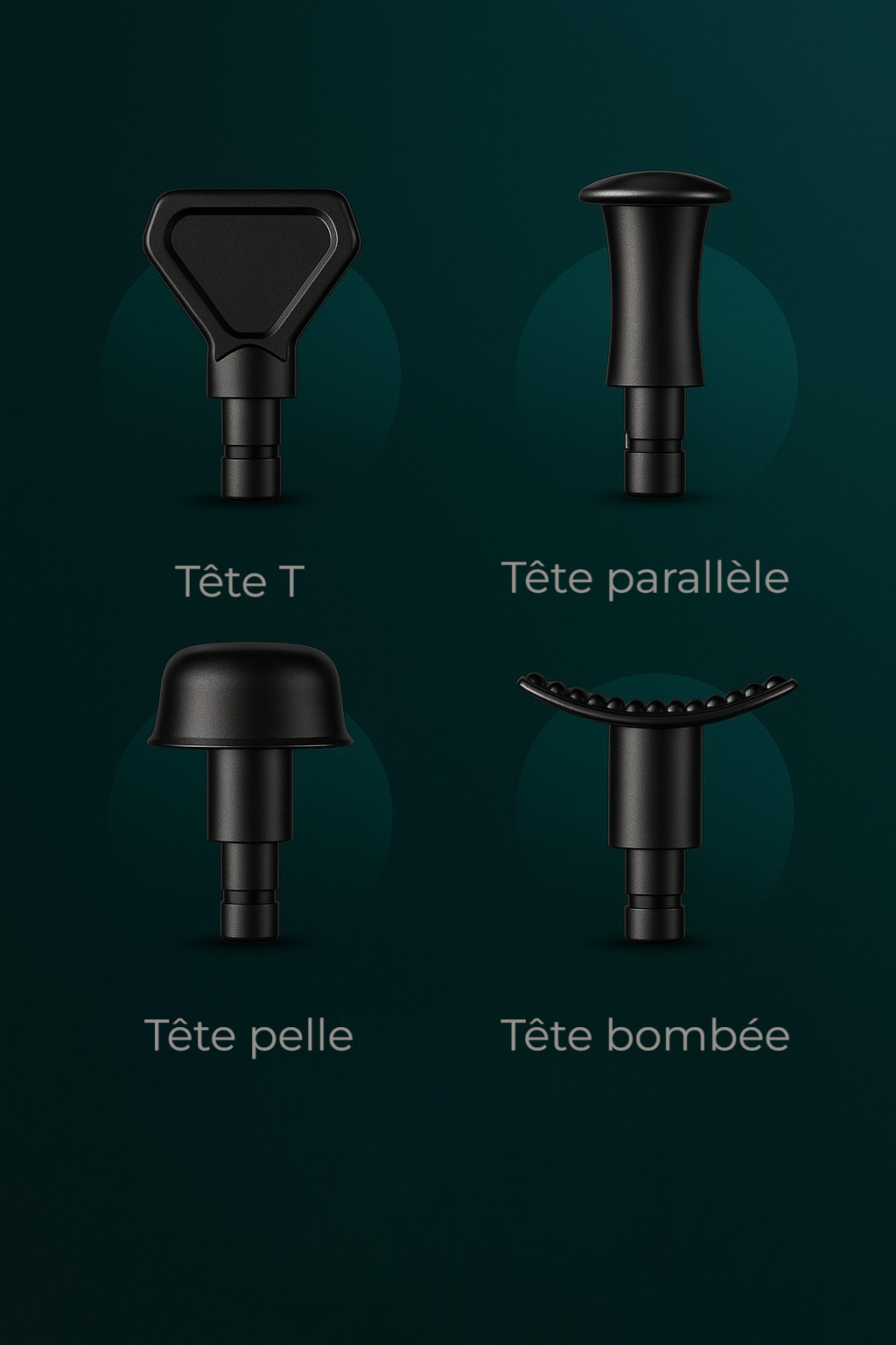 • Tête plate : Pour toutes les zones du corps, massage uniforme.
